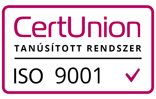 Der Betrieb nach unserem gemäß der Norm MSZ EN ISO 9001:2009 entwickelten und eingeführten Qualitätssicherungssystem ist die Garantie für unsere Partner für die zuverlässige Qualität unserer Arbeit.