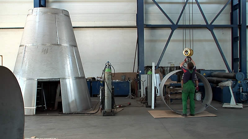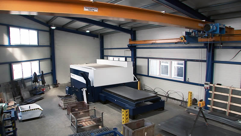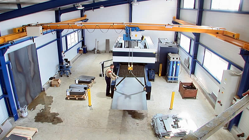 - Unsere Fertigungshalle ist 1800 m² mit 2 Stk. 4-Tonnen Brückenkran